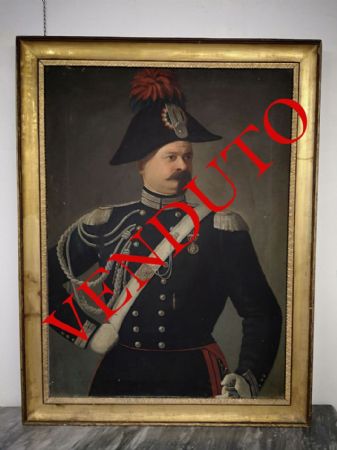 - Grande dipinto olio su tela , raffigurante carabiniere in alta uniforme. Soggetto raro , opera di grande misura e impatto.