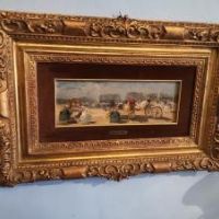 Bellissimo dipinto, olio su cartone di Emma Ciardi , raffigurante scena galante ricca di personaggi, ambientata a Parigi