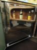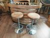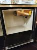 Mobile bar caratterizzato da acciaio cromato, tessuto Alcantara / pelle scamosciata color Cipria, dotato di frigorifero e due sgabelli , originale in tutte le sue parti, il tutto funzionante.